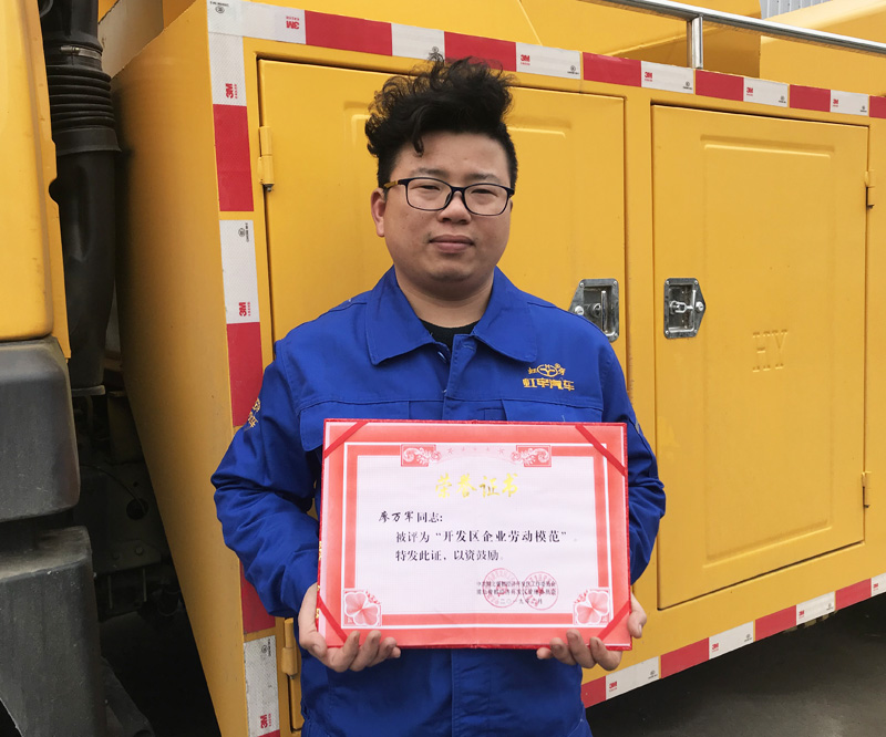 杨康,男,汉族,1986年出生,现在我公司售后服务部工作。今年是杨康同志在虹宇汽车工作的第11个年头了,从最初的车间焊装一线、到装配调试、再到现在的售后服务,杨康同志在每一个岗位上不仅工作技能突出,而且兢兢业业,任劳任怨。2018年,虹宇汽车流动服务站全面启动,杨康同志主动提出转岗至公司售后服务部,全国各省市间流转,致力为用户提供最迅捷的售后服务。从事售后服务工作,就意味着几乎全年时间都不在家,跟妻儿聚少离多。但杨康同志无悔自己的选择,他说作为公司的老员工,越是在艰苦的工作面前,越是应该最先站出来!