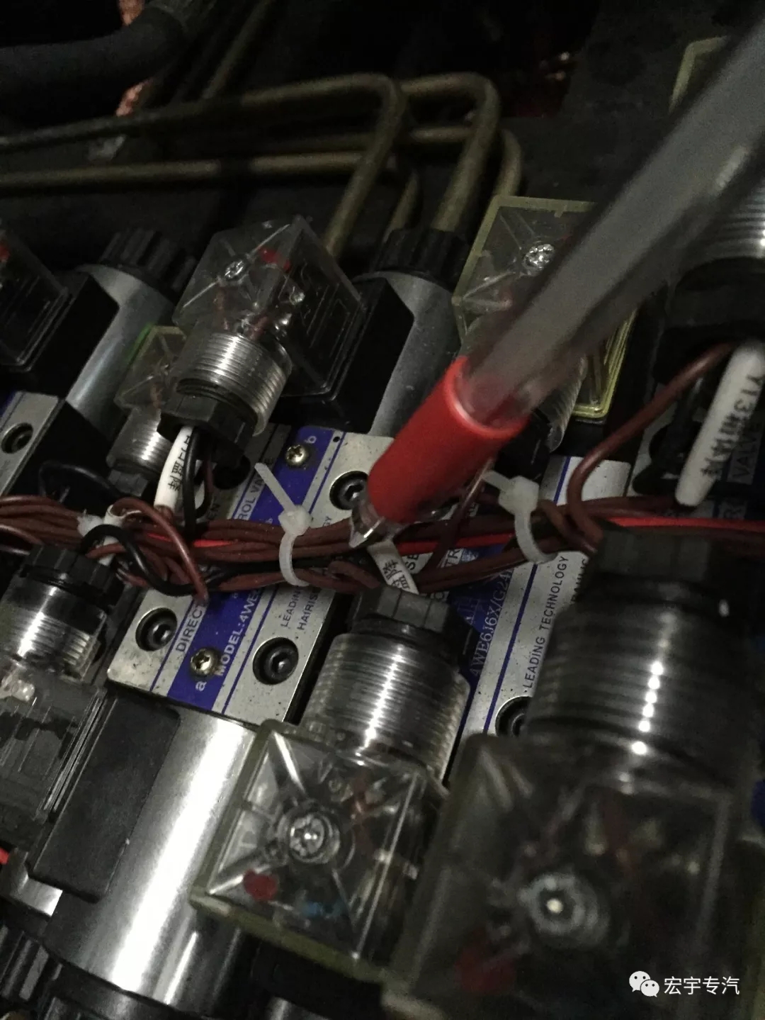 确定哪一个电磁转向阀的接线盒中的二极管被击穿,取下更换即可