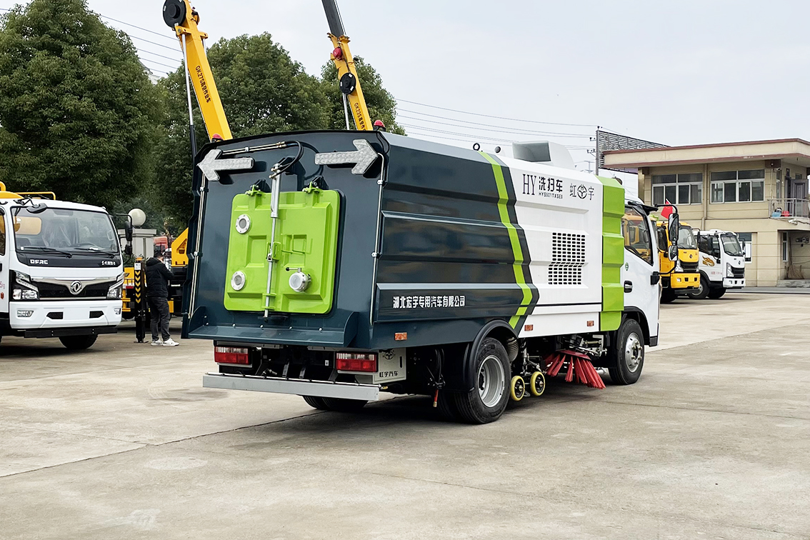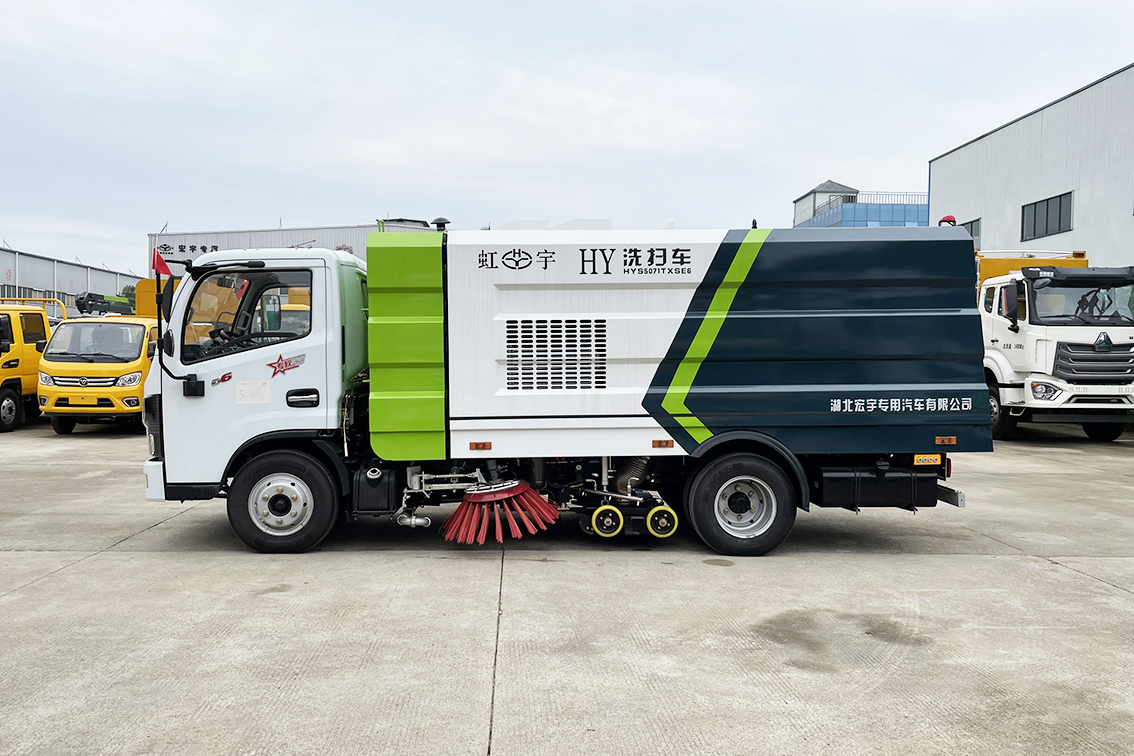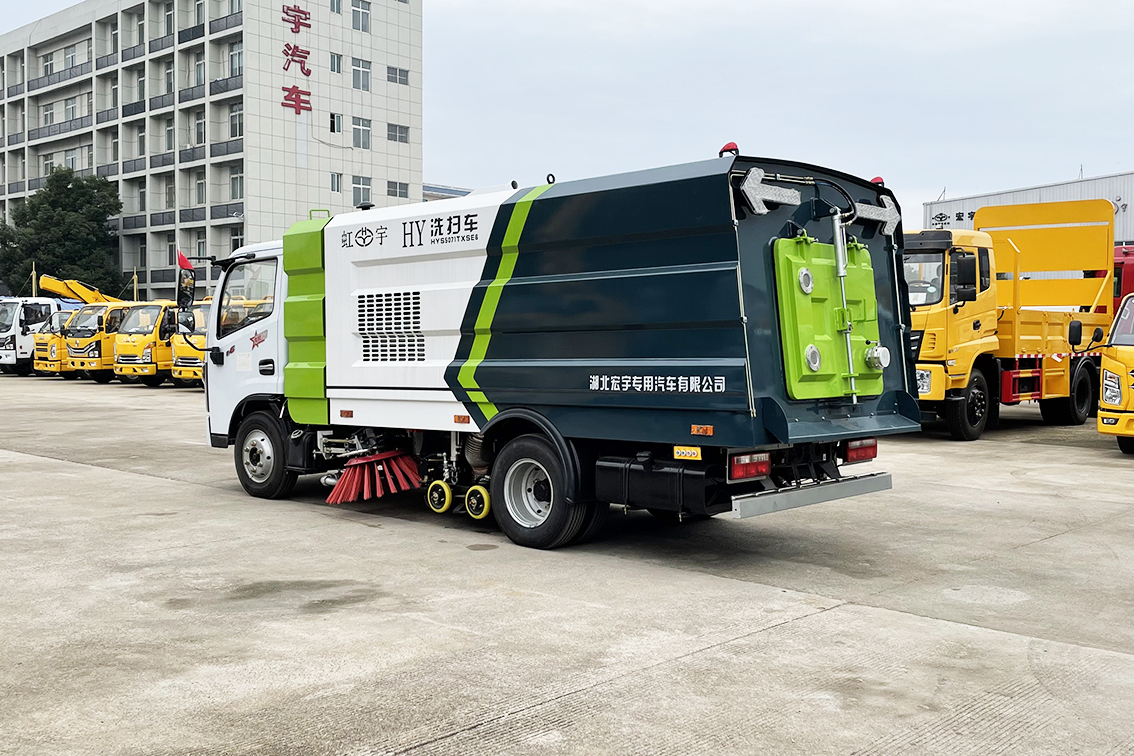 宏宇东风5m³洗扫车具有车身轻巧,转向灵活的特点,特别适用于狭窄街道和小区的路面洗扫作业,也可适用于各种厂区的清扫保洁作业。
