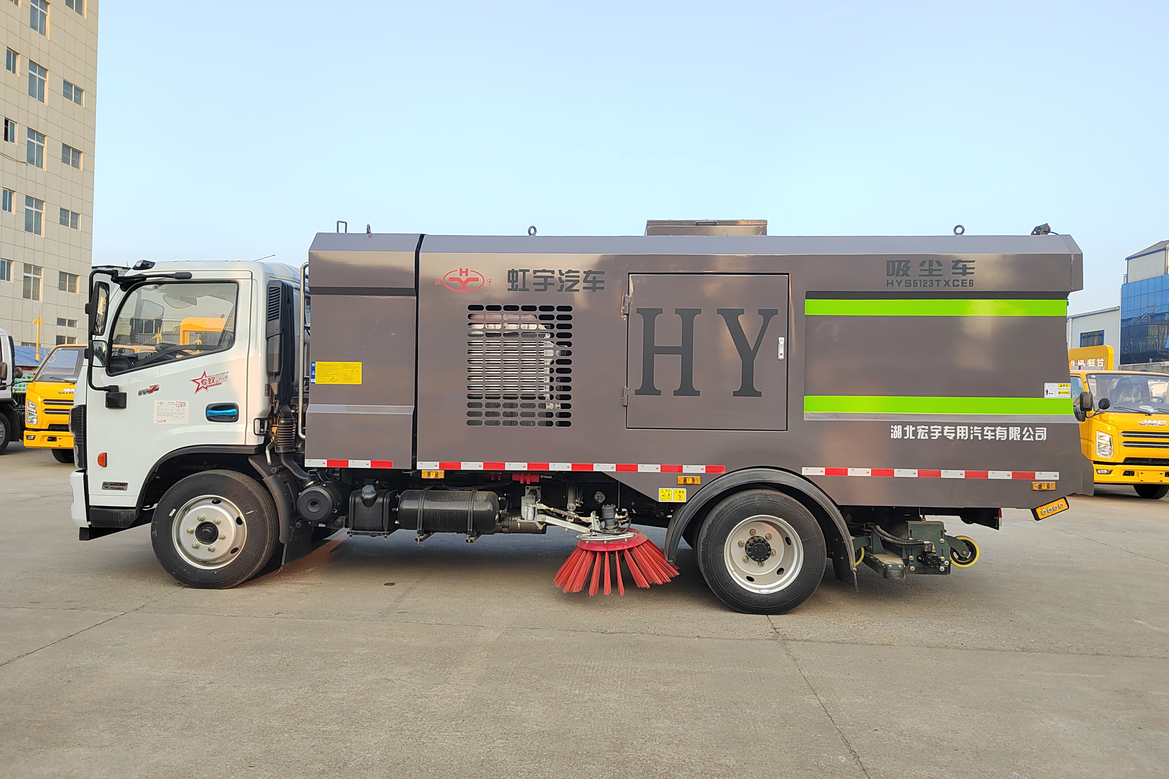 HYS5123TXCE6型吸尘车是湖北宏宇专用汽车有限公司生产的一款,具有自主研发专利的道路清扫作业车辆,具有路面清扫、喷雾除尘等多功能。采用后置滚扫+负压直吸的工作原理完成作业。该产品适用于煤矿厂、化肥厂、钢铁厂、水泥厂等路面灰尘较厚的场所。