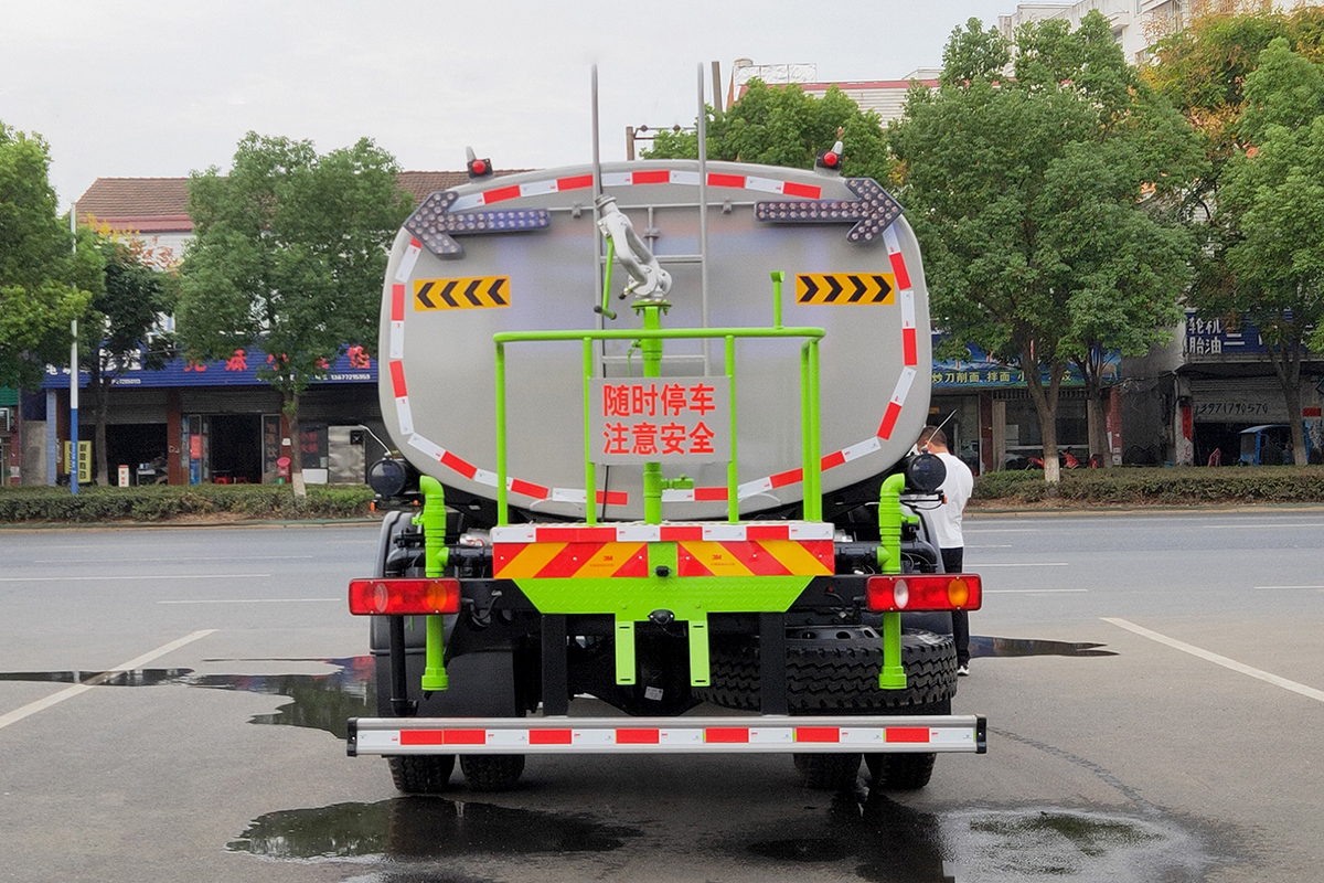 其他 随底盘选装驾驶室;选装后部安装水枪装置型式或雾炮装置型式;选装管箱样式;选装高位洒水装置,选装后部管道分布样式,选装后平台样式。罐体总容积11.55立方米,有效容积11立方米,罐体尺寸为(长×长轴×短轴)(毫米):5000×2250×1500,4700×2300×1550,4500×2300×1550,4200×2300×1550。ABS型号/生产厂家:3631010-C2000/东科克诺尔商用车制动系统(十堰)有限公司,ABS 8/东科克诺尔商用车制动系统(十堰)有限公司, 4460046450/威伯科汽车控制系统(中国)有限公司,J ABS/焦作博瑞克控制技术有限公司。侧防护采用冷弯型钢/Q235-B,螺栓连接;后防护采用冷弯型钢/Q235-B,螺栓连接。后防护截面高度尺寸120mm, 截面宽度尺寸50mm,下边缘离地高度480mm。该车用于除霾和降尘作用,主要专用装置为雾炮和水箱。车长/轴距对应关系为:8200/4500,8350/4500,8400/4700,8550/4700,9150/4700。该车用于园林绿化,主要专用装置为罐体。选装前部安装电子旋转式喷洒装置,前伸600mm,对应的车长/轴距为:8800/4500,9150/4700.选装后部平台样式,选装后部安装箭头灯。选装侧面及后面管道布置形式,选装水炮样式。随底盘选装排气管,尿素罐样式.