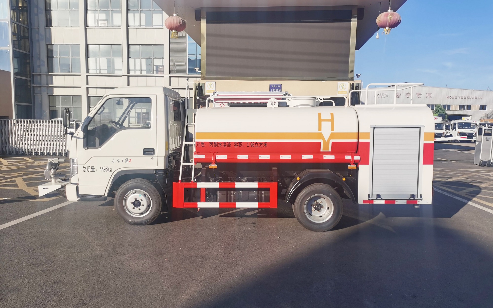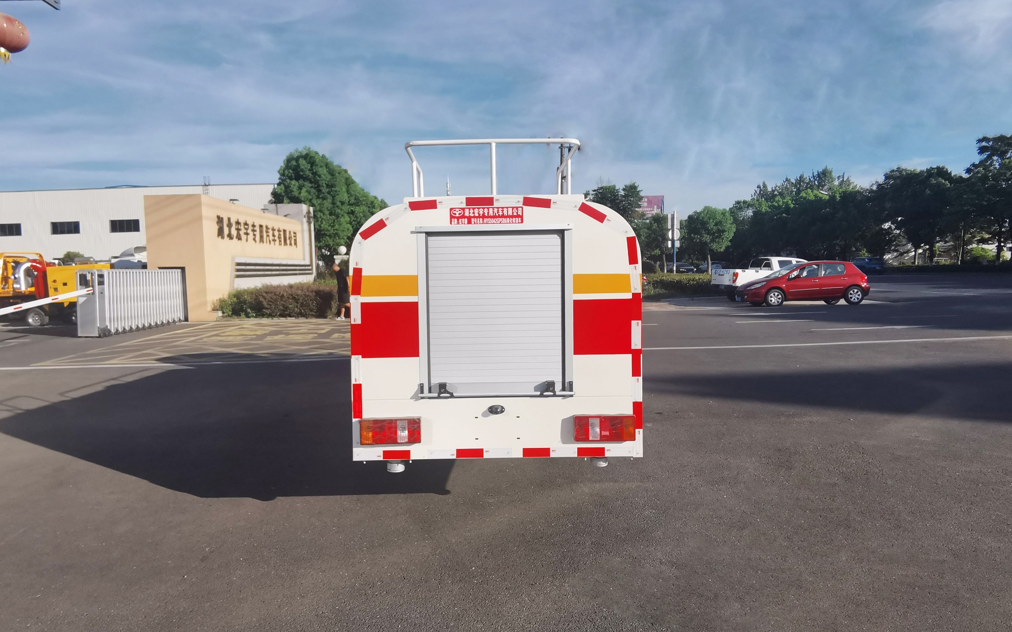 其他 随底盘选装驾驶室,选装侧面管道布置型式;选装前喷水架,安装该喷水架时,前伸为580mm,对应车长为5910mm或5975mm。罐体总容积2.06立方米,有效容积1.96立方米,罐体尺寸为(长×长轴×短轴)(毫米):2290×1540×840。侧防护采用冷弯型钢/Q235-B,螺栓连接,后下部防护装置采用冷弯型钢/Q235-B,连接方式:焊接连接,断面尺寸(宽×高):50×100(mm),离地高度:440mm。ABS型号为CM4YL,生产厂家为广州瑞立科密汽车电子股份有限公司。该车用于园林绿化及喷洒作用,主要专用装置为喷洒系统和水罐。