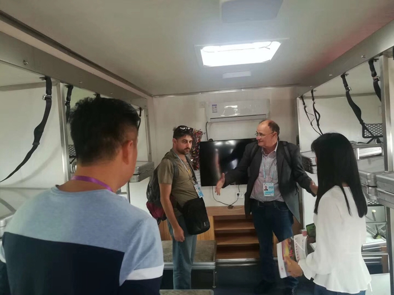 2019年4月,第125届中国进出口商品交易会(广交会)正式拉开帷幕,本届广交会虹宇汽车的参展代表车型应急保障宿营车在会展上聚焦了众多来自海内外的目光,来自亚非拉美和欧洲等多个国家的参展人员驻足虹宇展位洽谈了解,并进入车内参观体验,希望后续能进行长期和深入的合作。