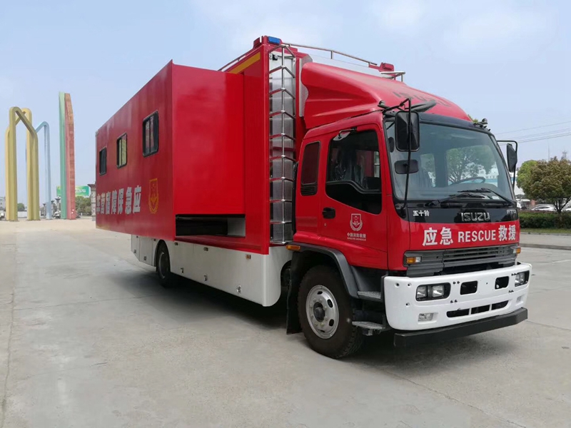 此次代表虹宇汽车应急保障系列产品参展的车型应急保障宿营车(型号:HYS5160TSYQ5)是虹宇汽车基于五十铃FTR重型底盘研发制造,专用于提供野外宿营保障,广泛适用于军队、公安特勤、消防、医疗卫生、抢险、应急救援等多种用途。车内配置齐全,全完满足在野外抢险救援,医疗救护、救灾、突发事件等情况下8-22人的宿营需求。