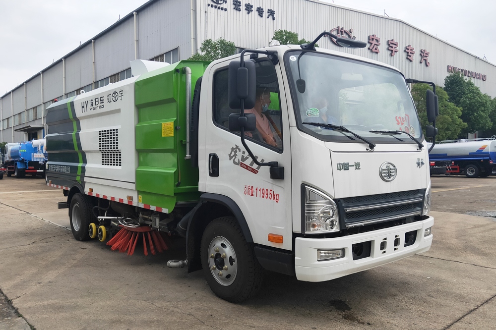 宏宇解放9m³洗扫车(5m³水箱+4m³垃圾箱),适用于城市道路、高速公路、广场、机场、码头、隧道、桥梁、隔离墙避、路缘和路缘石立面的机械化清洗、清扫、喷雾降尘等清洁作业。